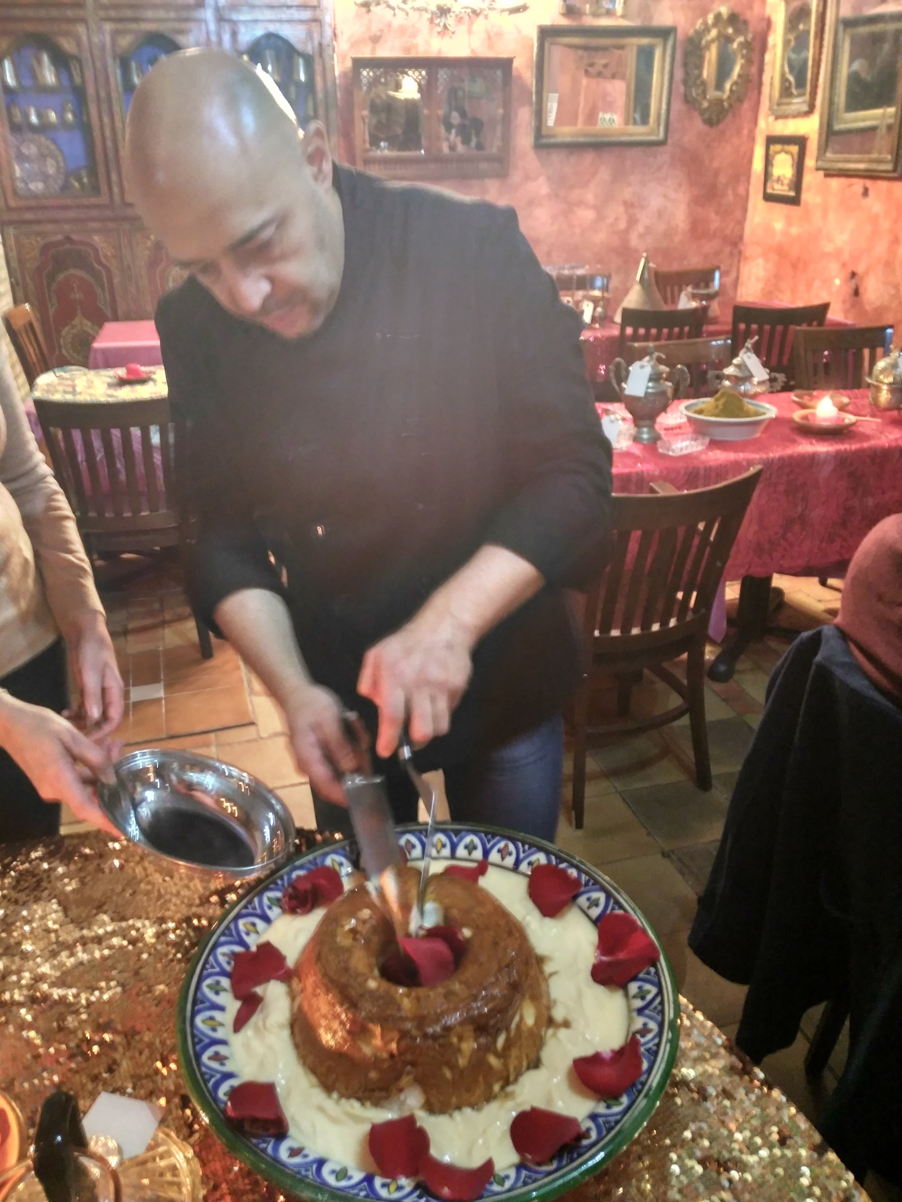 Pero hay más novedades. La carta se amplía más allá de las especialidades culinarias árabes, para hacer una vuelta al mundo de sabores, con platos de Portugal, como el molotov, un pudin de merengue y natilla con pétalos de rosa que está mortal, como un cóctel molotov pero en bueno; del sudeste asiático, como el curry Laksa, de los más deliciosos de Indonesia, o los mejillones thai. La ensalada granadina, con un equilibrio perfecto entre el salado del bacalao, el dulce de la granada, el ácido de la naranja y el contraste con la textura de la almendra. Por supuesto, no retiran alberenjimiel porque sus clientes les exigen esas berenjenas rebozadas con miel, así como el cuscús, que tiene auténticos adeptos.