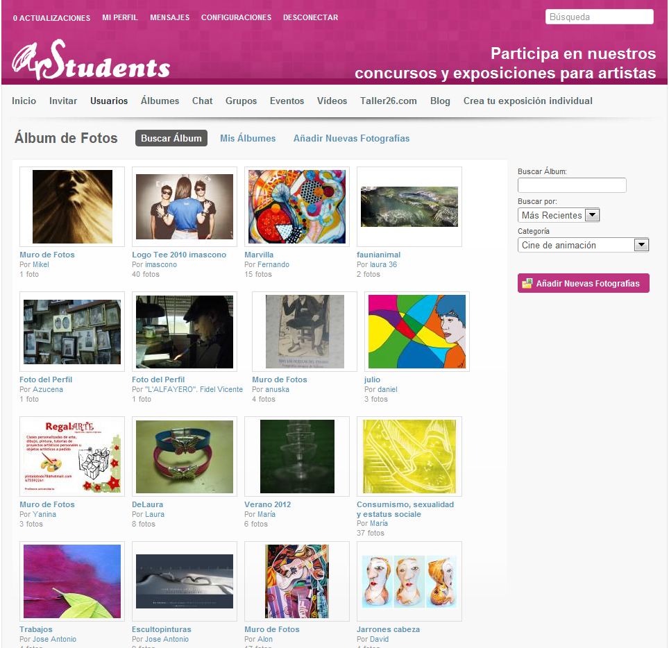 Arstudents ofrece a los artistas compartir ideas, opiniones, obra, preguntar dudas, crear grupos, hablar en tiempo real por el chat, subir vídeos, leer y comentar noticias de arte, interactuar con otros artistas venidos desde distintos lugares de España y Latinomérica y conocer obra contemporánea de diferentes disciplinas como, pintura, escultura, grabado, vídeo, diseño, joyería, orfebrería, moda y muchas más.