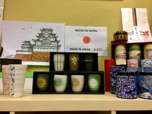Su pasión por acercar mundos lejanos también se refleja en su amplia variedad de accesorios: vasos, tazas, teteras, juegos especializados para catas. Sobre algunos de ellos cuelga el cartel: “Hecho en Japón”.