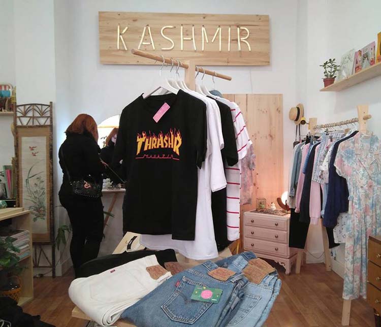 Desde que abrió sus puertas en enero de 2016 Kashmir apuesta por una moda vintage que pueda llegar a todo el mundo. Su fórmula consiste en precios asequibles y cierta adaptación de la ropa y los complementos a las hechuras actuales.