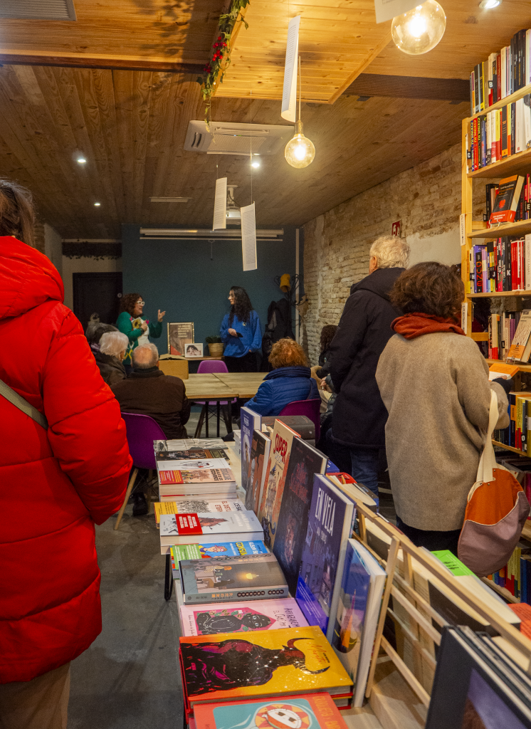 Paseando por el barrio del Gancho llegamos hasta la librería independiente de La Montonera. En este caso, también tuvimos el placer de conocer en persona a la científica a la que homenajea el escaparate.