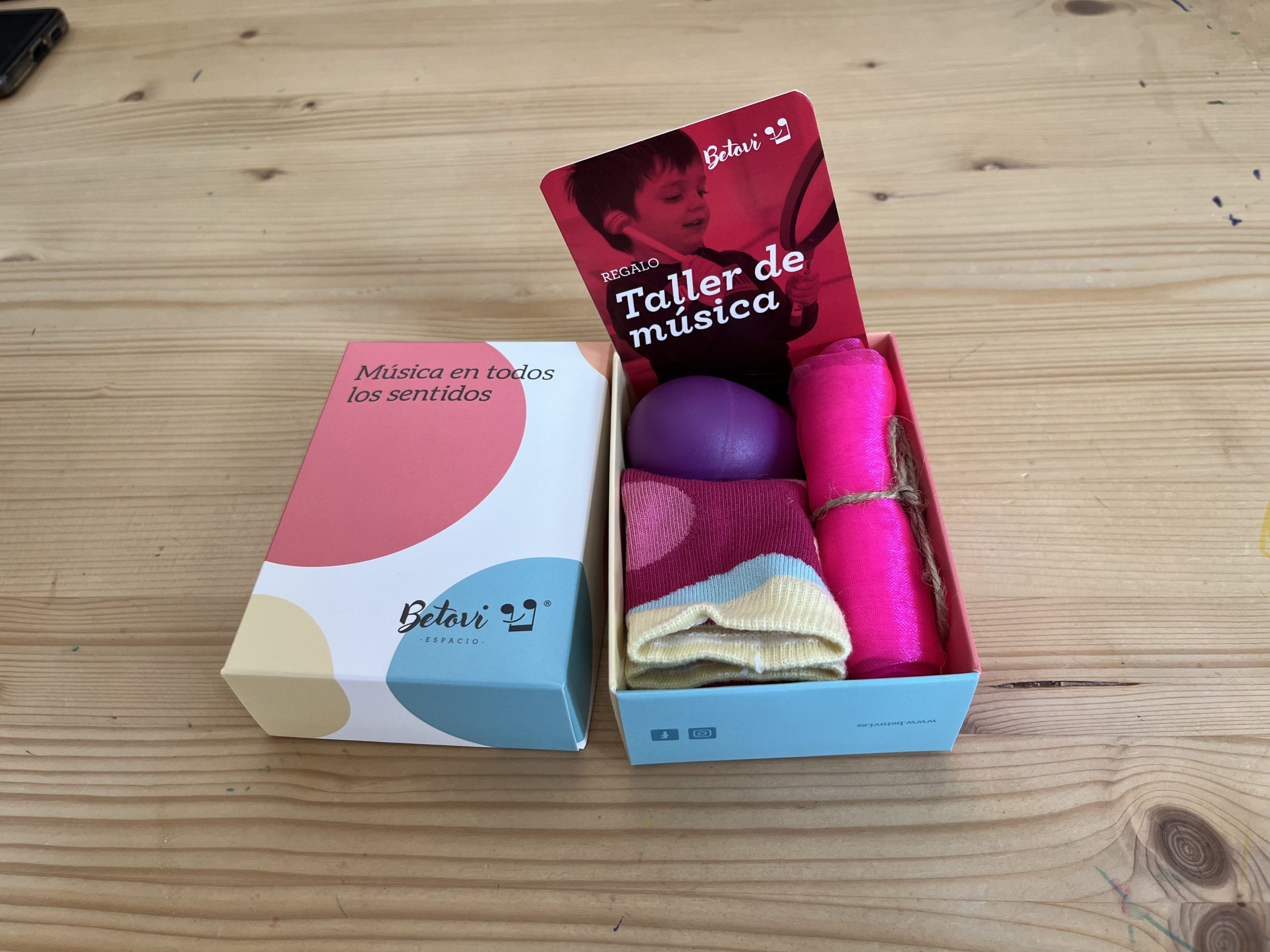 Si quieres probar una de las clases que ofrecen o regalar música, en Betovi tienen preparadas unas cajitas experiencia. En ellas podrás elegir entre talleres de fin de semana para bebés junto con un adulto o música en familia para niños de 3 a 5 años junto con un adulto. «También se puede venir sin que sea un regalo», dice Julia, «ya que son actividades que tenemos desde septiembre hasta junio.