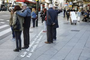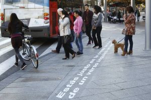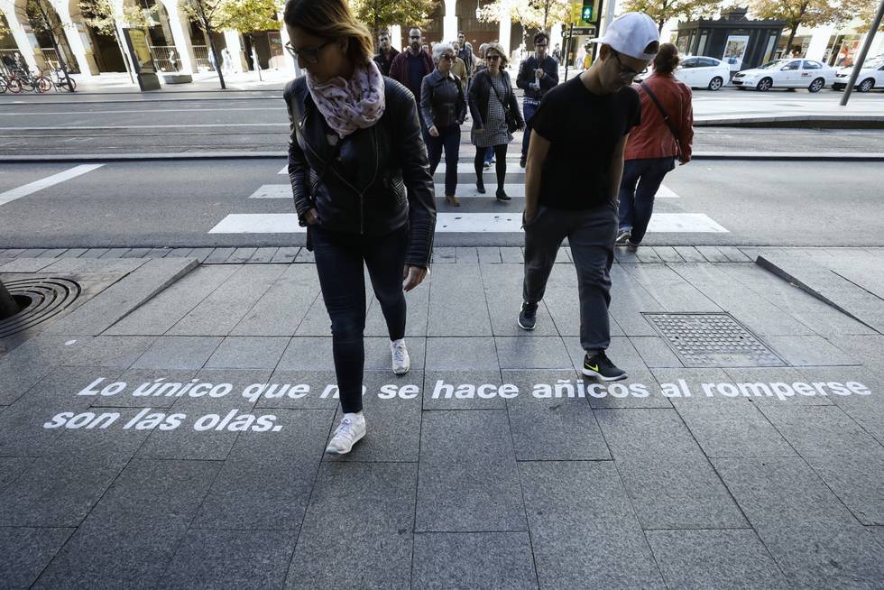 Y la acción más vistosa, como demuestran las fotos de Oliver Duch, de El Heraldo de Aragón, es la de Versos de 12 autores en los pasos de cebra, desde Plaza de España hasta Paraíso; no en vano, se han subido bastantes fotos a las redes, parece que gustan mucho a los transeúntes, pero lamentablemente no vamos a poder disfrutar de esa decoración poética todo el año. Habrá que esperar a la siguiente edición, pues los organizadores esperan que Rasmia se vaya consolidando cada año, dada la magnífica respuesta que están obteniendo por parte de poetas y público.