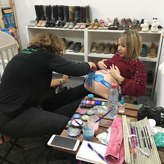 Durante la noche las futuras mamás se acercaron a conocer la tienda y a que Semeantojaunafiesta decorara sus barrigas con una divertida actividad de bellypainting.