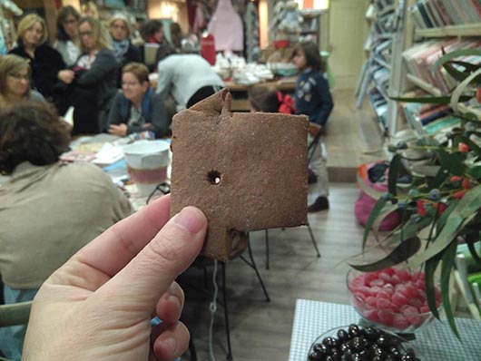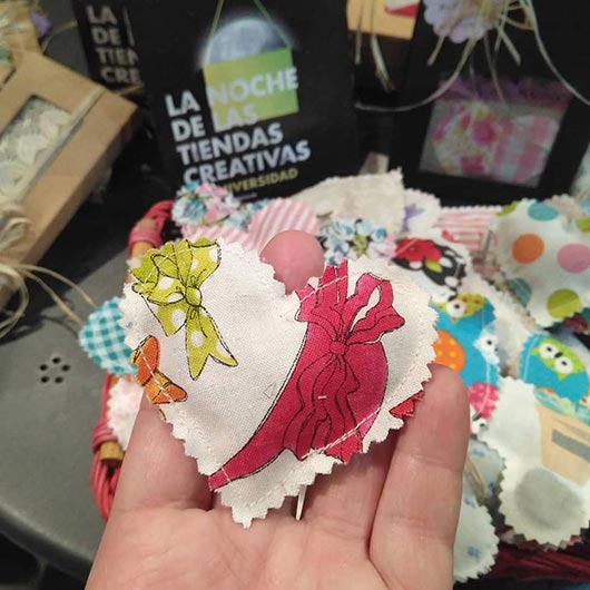 Llegamos hasta Telas de Luna (Calle Cervantes 4), una tienda de arte y manualidades, especializada en patchwork. Para la Noche de Las Tiendas Creativas estaba decorada al más puro estilo navideño y al visitante se le agasajaba con unos dulces y cava aragonés.