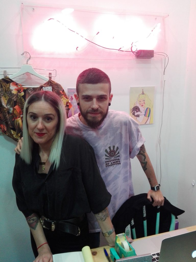 Sara Cortés vende ropa vintage unisex. Ofrece una amplia selección de prendas en perfecto estado, reciclando y reutilizando las prendas que llegan en peores condiciones para confeccionar nuevos artículos customizados y complementos originales. Además en su establecimiento hay cabida para ilustradores tanto de la tierra como de otras ciudades.
