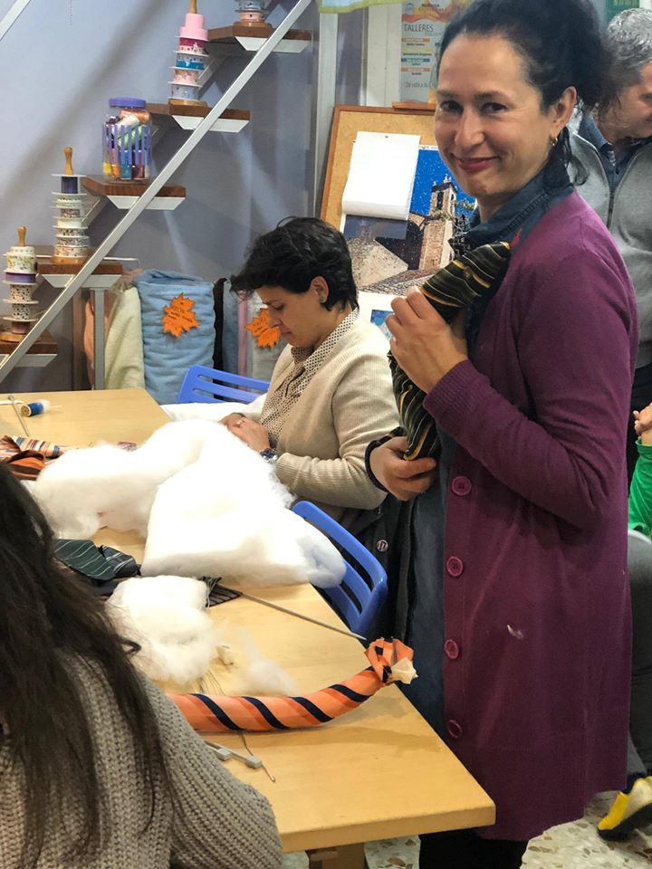 Durante la Noche, en El Siglo podíamos encontrar a UnaOcaLoca con un taller en el que las asistentas aprendían a transformar una corbata en una divertida serpiente.