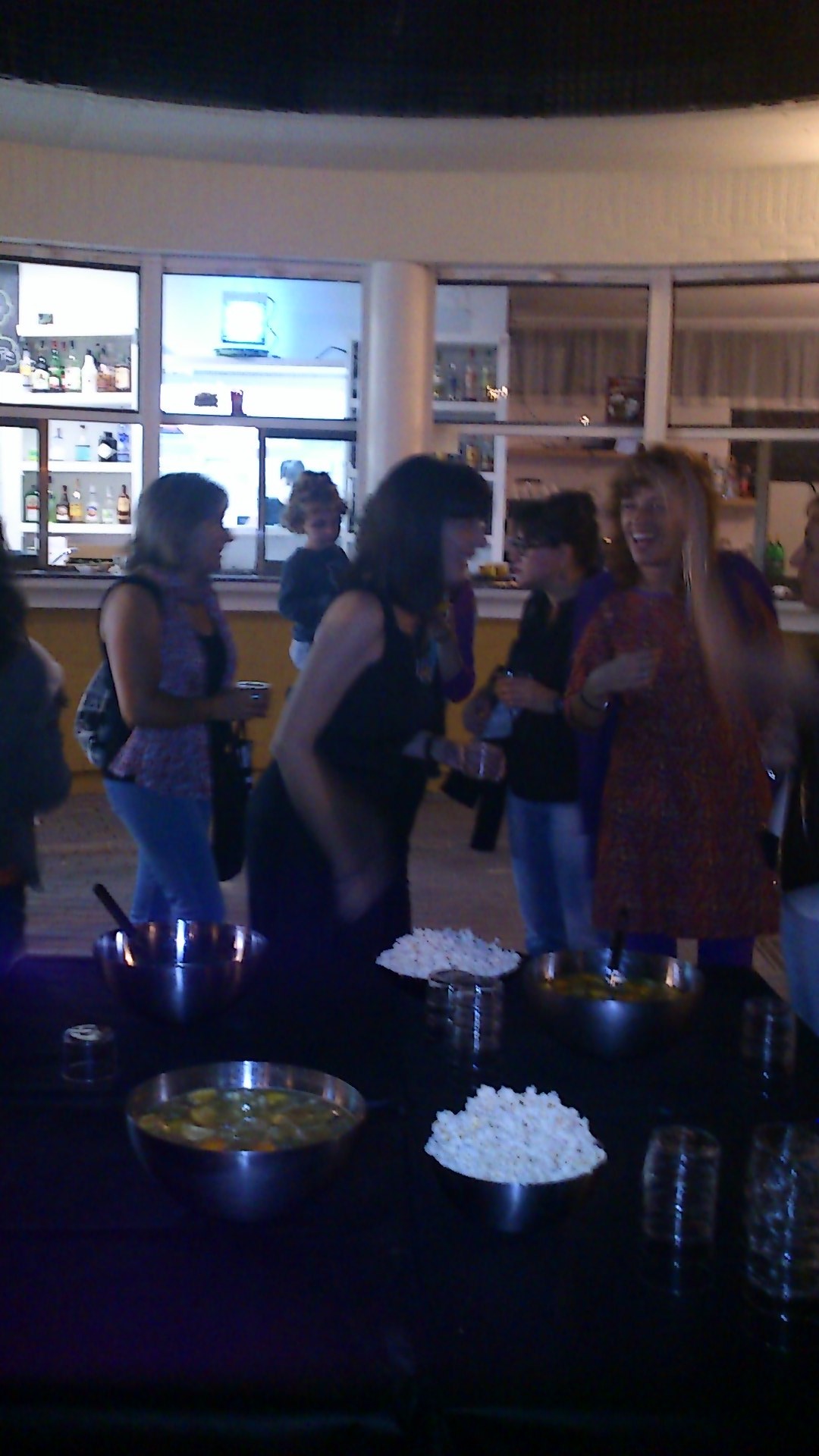 Fue una noche entrañable en la que Asun, rodeada de muchos seguidores, amigos y familia nos sorprendió con una fiesta, muy años 60, en la que hubo ponche, palomitas, regalos para todos los asistentes (un ratón alfiletero adorable) y una actuación especialmente divertida, única, y muy retro de la mano de Naty y Ainhoa: The Bang Bangs Pin Up Show
