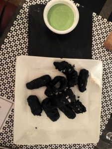 Y para que nadie se aburra, le están echando grandes dosis de creatividad. Para que te hagas una idea, en la primera cena se abordaron Historias de Vampiros, con un menú terrorífico que tenía todos los ingredientes de la sangre y la muerte pero estaba para hincarle los colmillos. Compara el nombre del plato con los ingredientes: Alcancemos la inmortalidad con Sangre Fresca → Bloody Mary de remolacha y espuma de parmesano; Vista al Cementerio en Luna Llena → Pannacotta de setas y foie, germinados y cruz sablé; Huesos en Tempura → Brocheta de calamar y hortalizas con alioli de albahaca; Calabaza de Halloween → Mousse de queso y tomate seco sobre tierra de cacahuete.