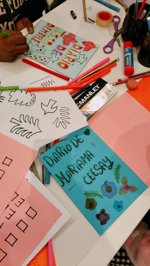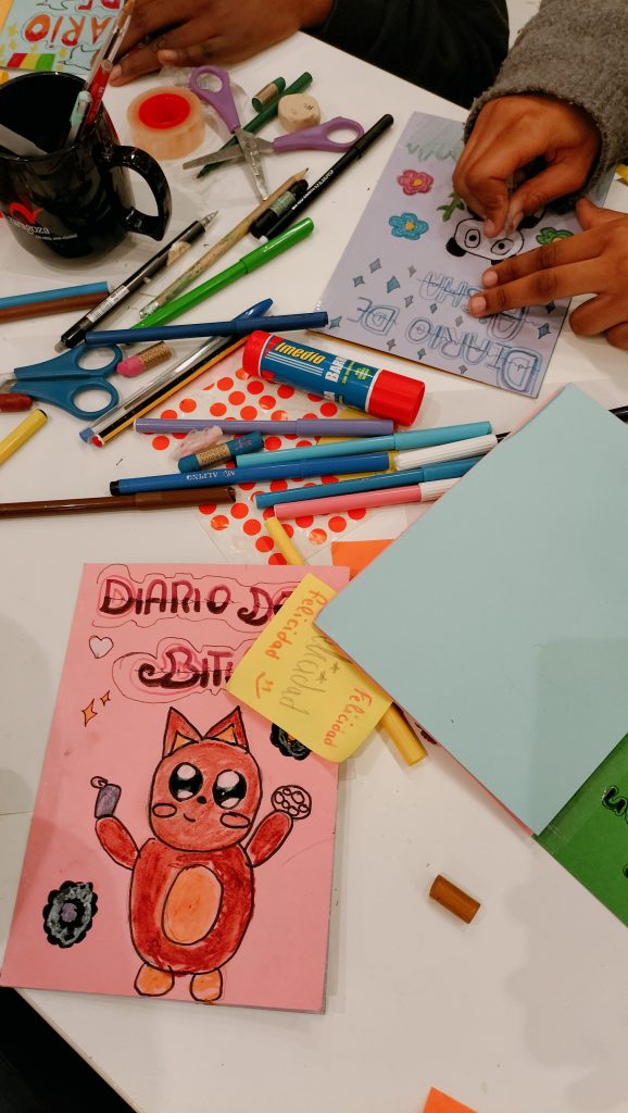 En los talleres realizados por Arantxa han venido varios grupos de educación especial del IES Ramón y Cajal y varios de 5º y 6º de primaria del CEIP Andrés Manjón. Alumnado con diferentes franjas de edades que, como siempre, han respondido de manera fantástica a las propuestas. Esta vez con un ejercicio de creación de un diario ilustrado.