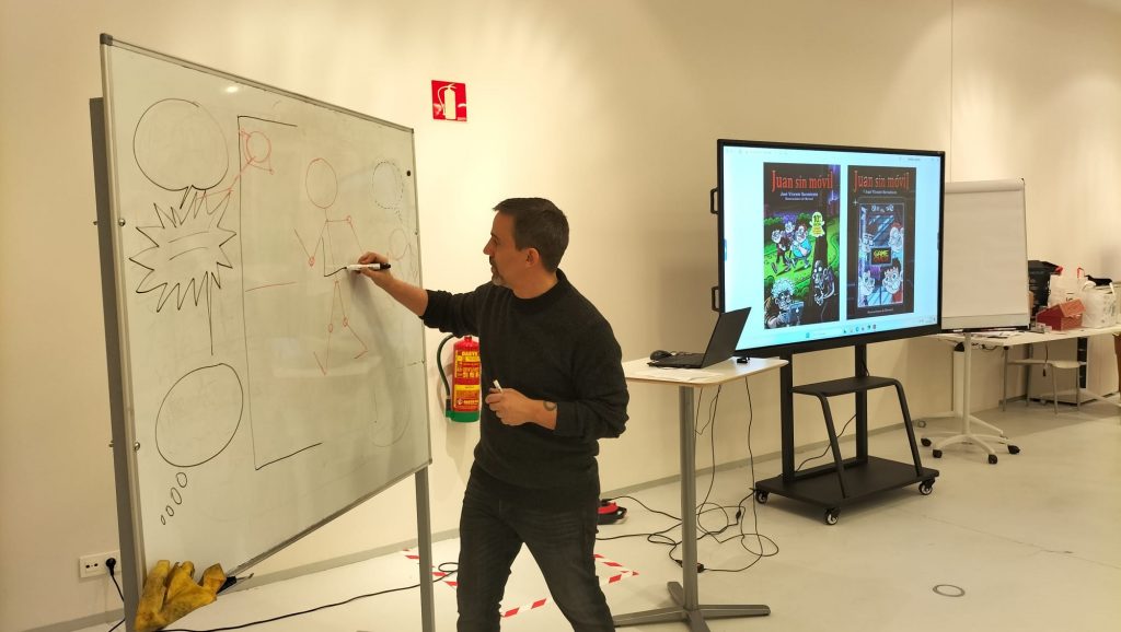 Este año hemos comenzado los talleres por el final. Normalmente los terminamos con los talleres de cómic y pero este año hemos cambiado la dinámica comenzando con ellos. Como primer autor invitado hemos contado con el trabajo de un gran dibujante de Zaragoza, José Antonio Bernal.