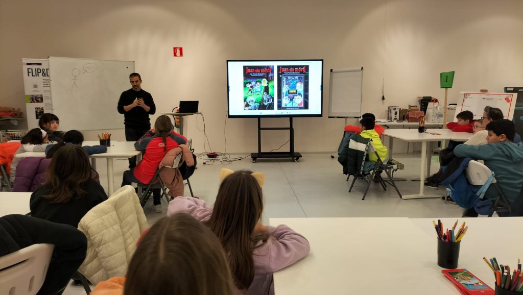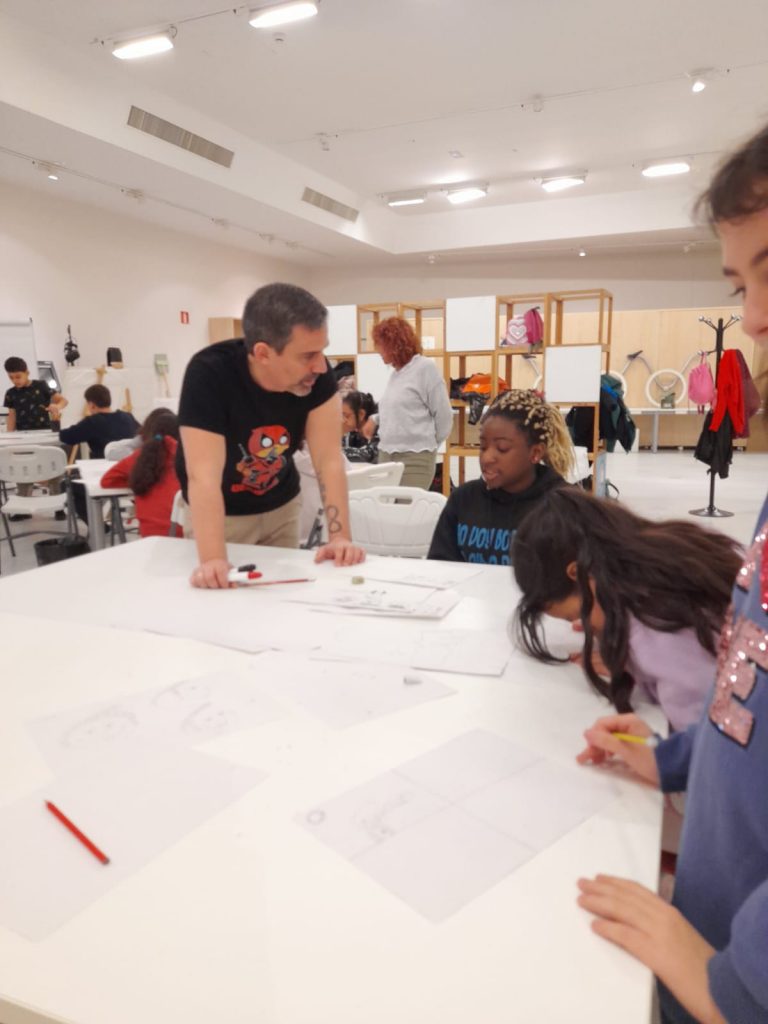 En los talleres realizados por José Antonio Bernal, han venido dos grupos del CEIP Ciudad de Zaragoza. Alumnado con edades comprendidas entre los 10 y 12 años que han respondido de manera fantástica a las propuestas, en concreto esta vez al ejercicio de creación de personajes y realización de una página de cómic.