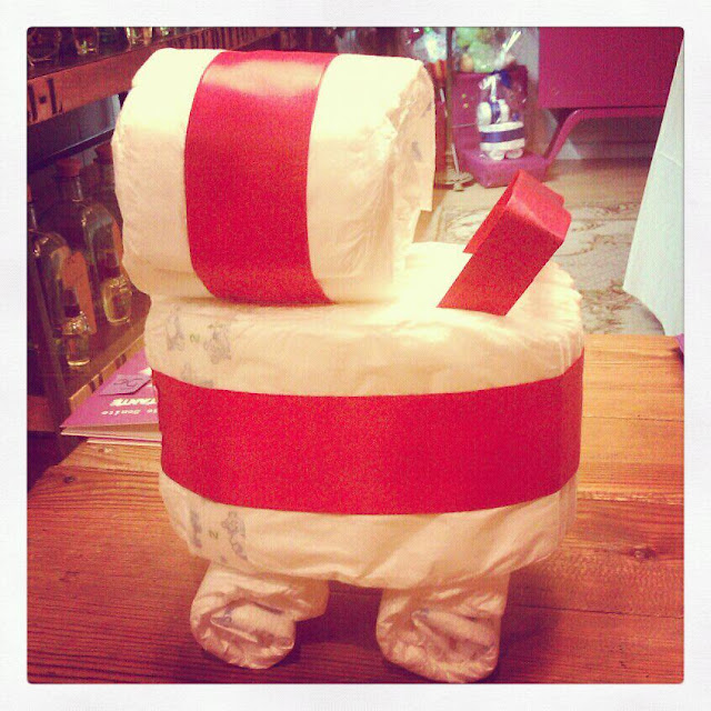 O si tenéis que hacer un regalo a una recién mamá y os queréis salir de lo tradiconal…… Carritos de pañales: