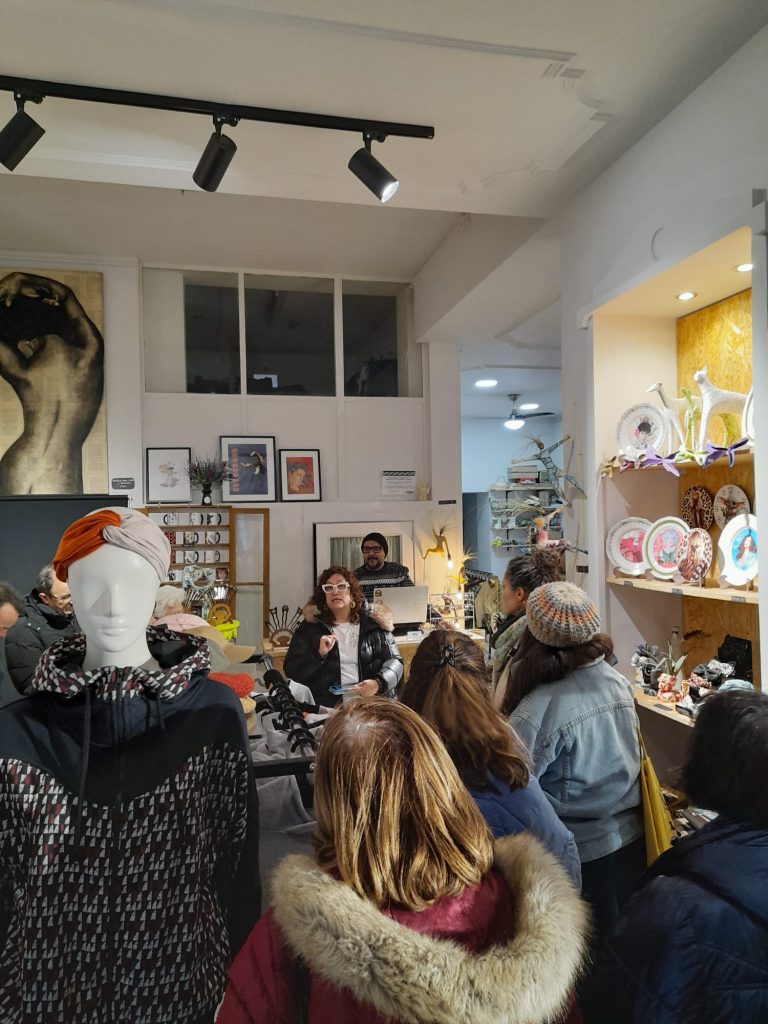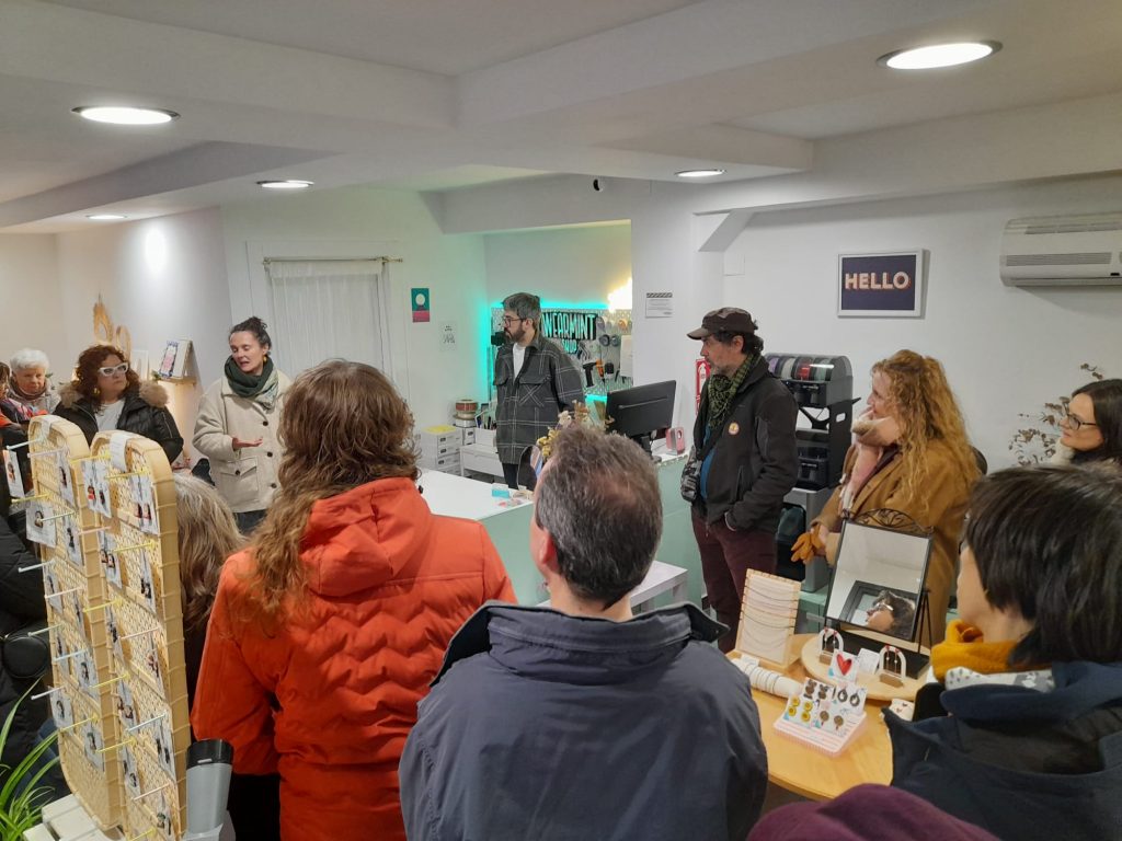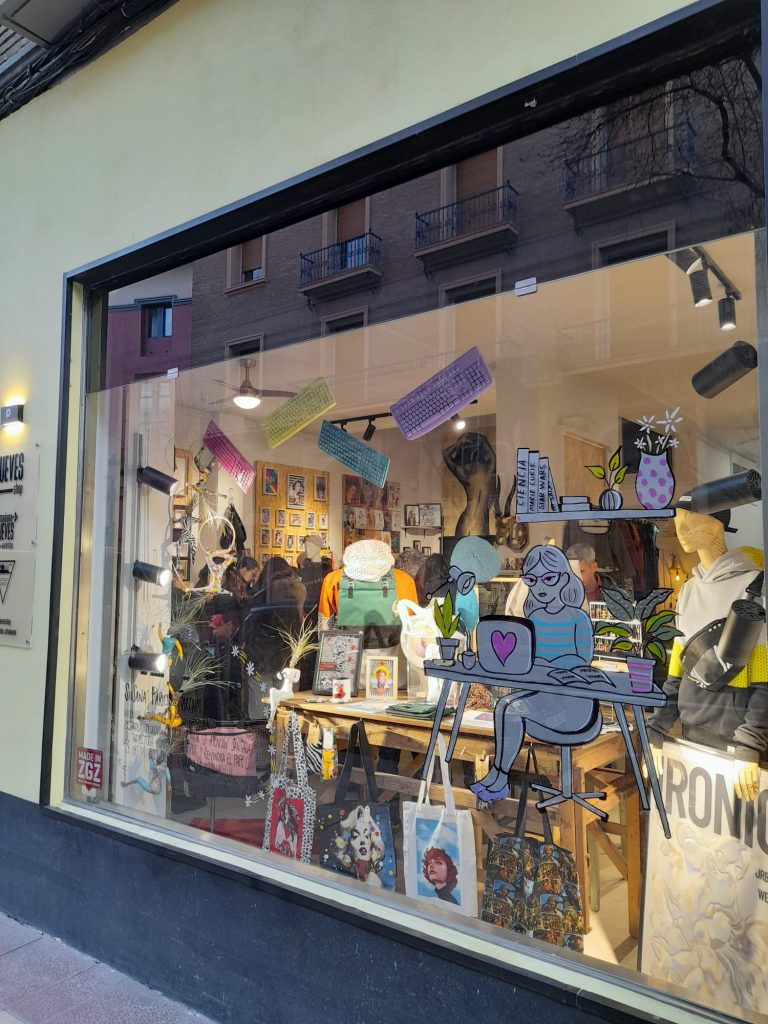 Continuamos la ruta en Jueves Shop, un espacio entre el Casco Histórico y la Madalena en el que el público y los artistas se dan la mano para crear comunidad en torno a la artesanía y el diseño. Allí está presente el atelier de IRONIC URBANWEAR con su moda ética, artesana y «para todes».